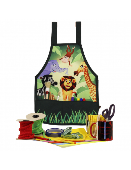 - Přední straně je umístěna dvoudílná kapsa, která se perfektně využije pro nejdůležitější potřeby při dětské kreativní tvorbě